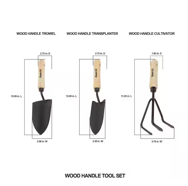 The Anvil garden tool set is the perfect tool set for your gardening needs. With durable, rust resistant, black coated steel heads and ergonomically designed comfort grips, this tool set is designed for both extended use and longevity. Great for planting, digging, moving soil, transplanting, cultivating and more. Ideal for the professional landscaper or home gardener alike.