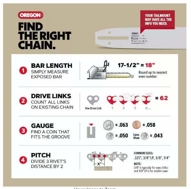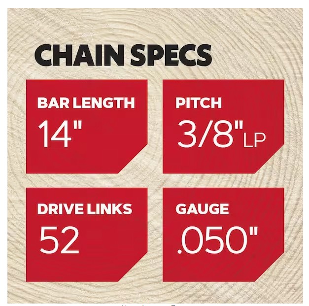 • Durable, low-kickback, low-vibration chain helps reduce user fatigue for increased periods of work- for all chainsaws brands that run 3/8 in. pitch, 0.050 in. (1.3 mm) gauge, 52 drive links